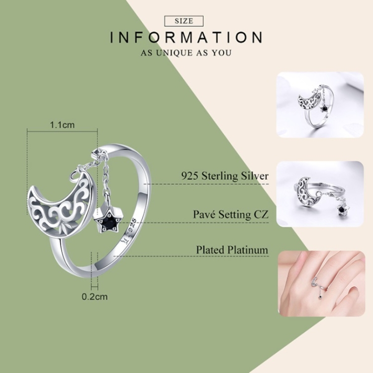 Be the first to review “S925 Sterling Silver Ring Starlight Moon Sky Open Ring”