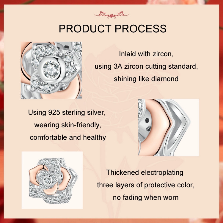 S925 Sterling Silver Rose Gold Shining Rose DIY Beads