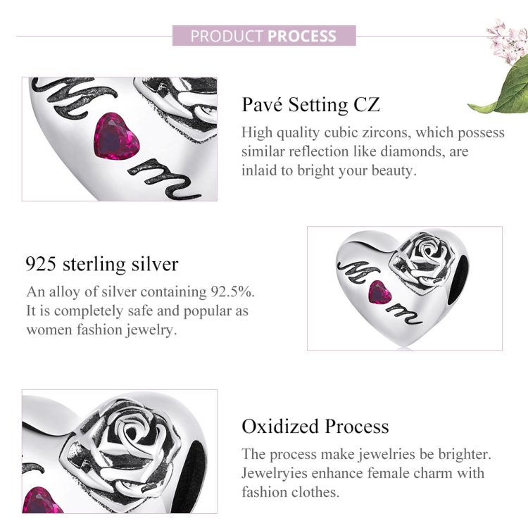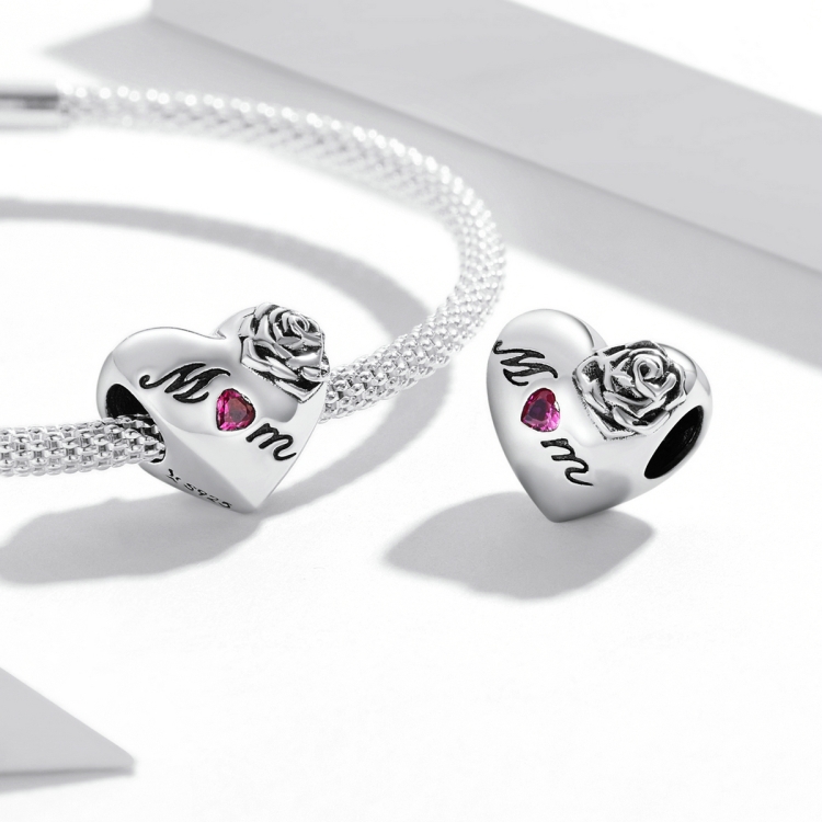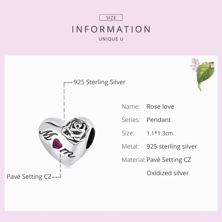 S925 Sterling Silver Rose Heart Beads DIY Bracelet Necklace Accessories
