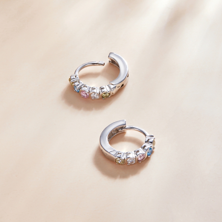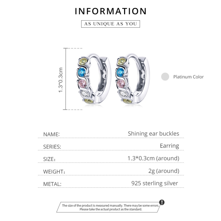 S925 Sterling Silver Shining Colorful Zircon Ear Buckle Women Earrings