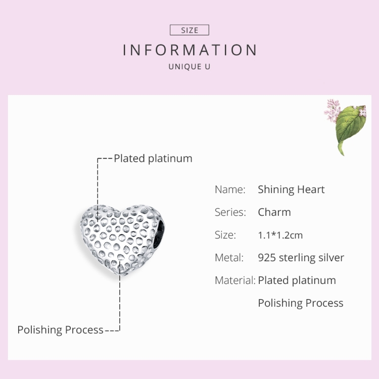 S925 Sterling Silver Shining Heart Beads DIY Bracelet Necklace Accessories