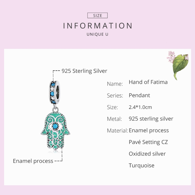 S925 Sterling Silver Silver Hand Of Fatima Pendant DIY Bracelet Necklace Accessories