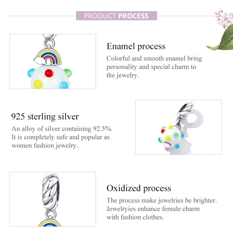 S925 Sterling Silver Silver Rainbow Glaze Pendant DIY Bracelet Necklace Accessories