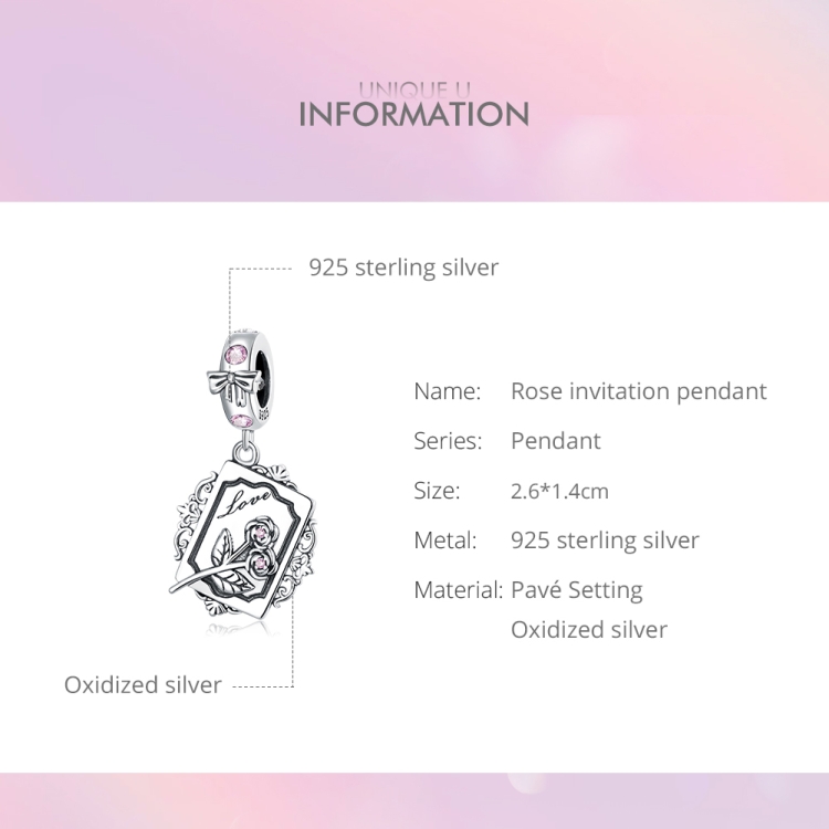 S925 Sterling Silver Silver Rose Invitation Pendant DIY Bracelet Necklace Accessories