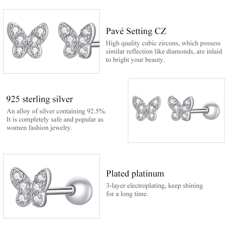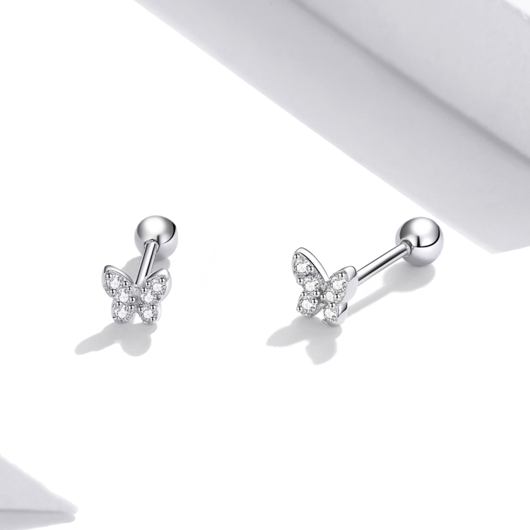 S925 Sterling Silver Simple Butterfly Ear Studs Women Earrings