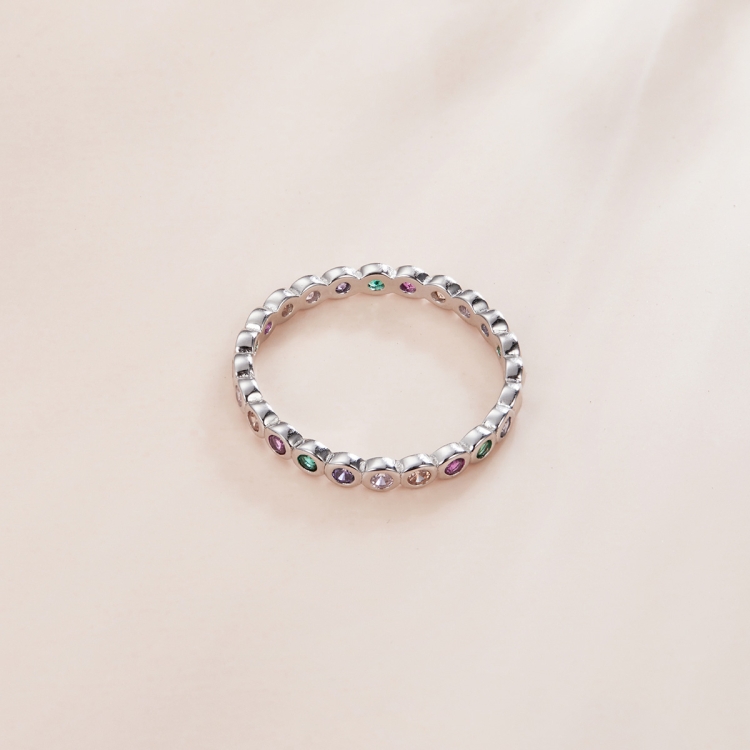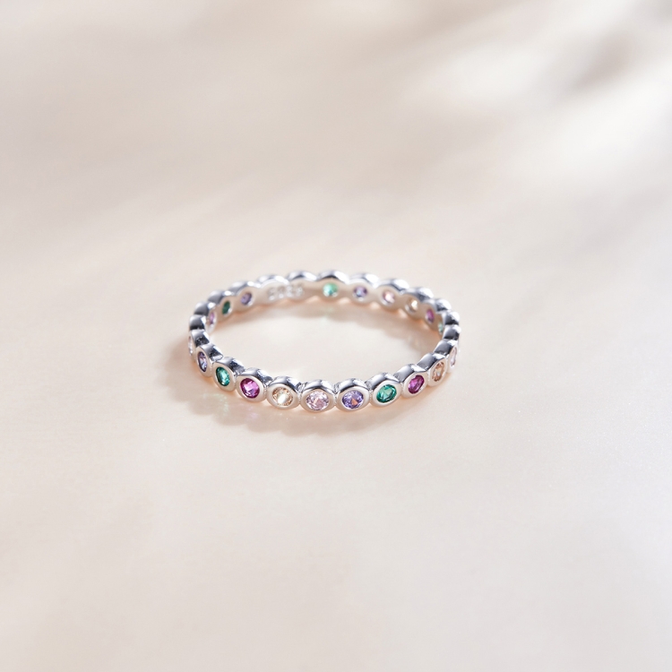 S925 Sterling Silver Simple Colorful Zircon Women Ring
