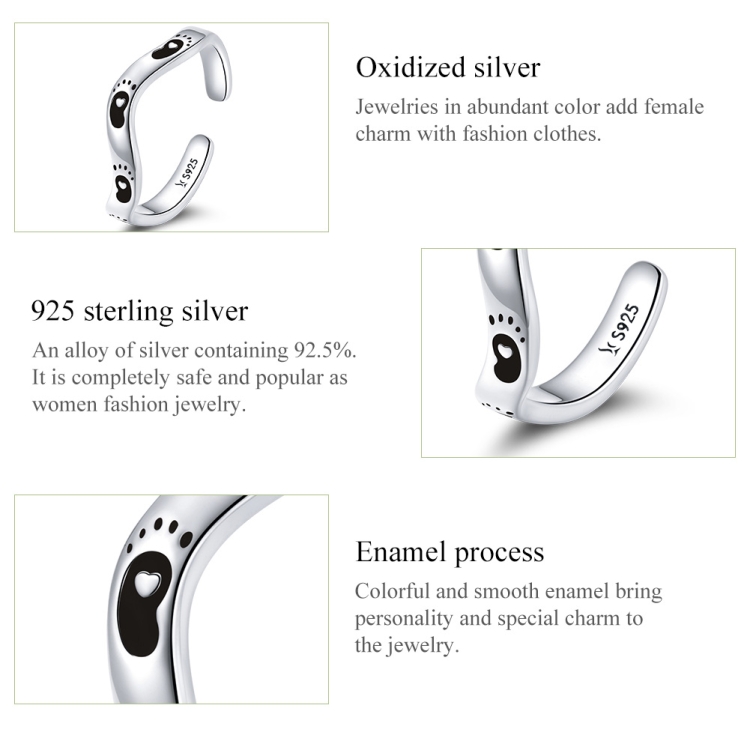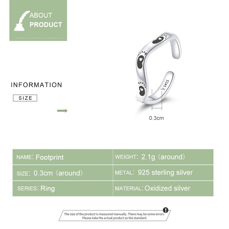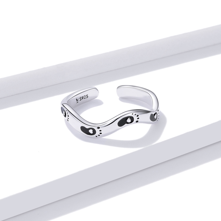 S925 Sterling Silver Simple Footprint Women Open Ring