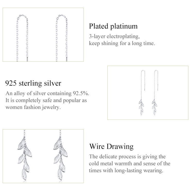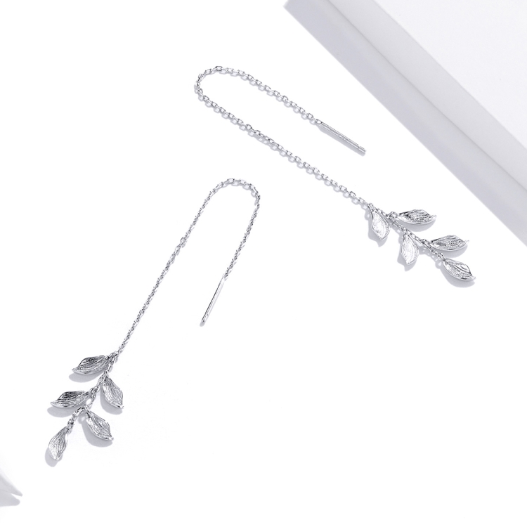 S925 Sterling Silver Simple Style Long Leaves Women Earrings