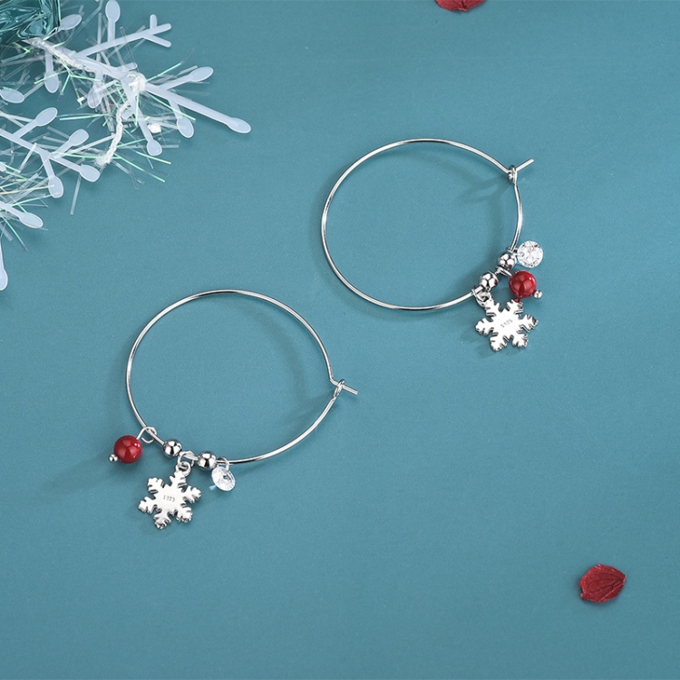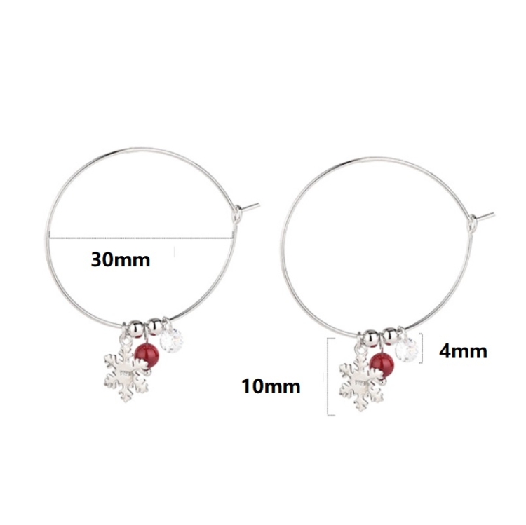 S925 Sterling Silver Sparkling Diamond Red Ball Snowflake Earrings Christmas Earrings