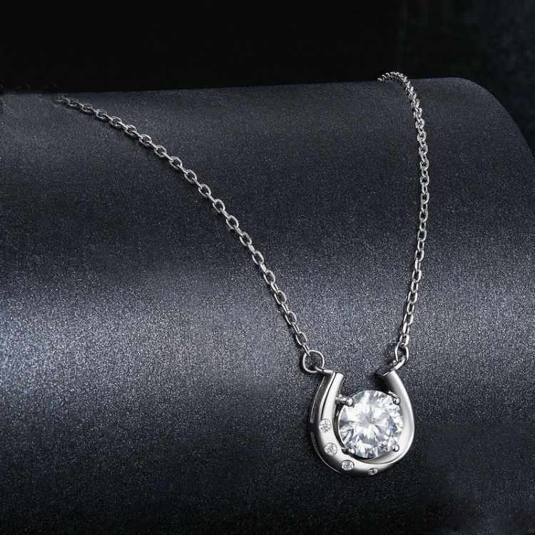 Be the first to review “S925 Sterling Silver Sparkling Horseshoe Moissanite Pendant Necklace”