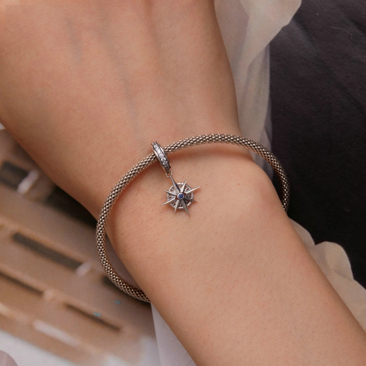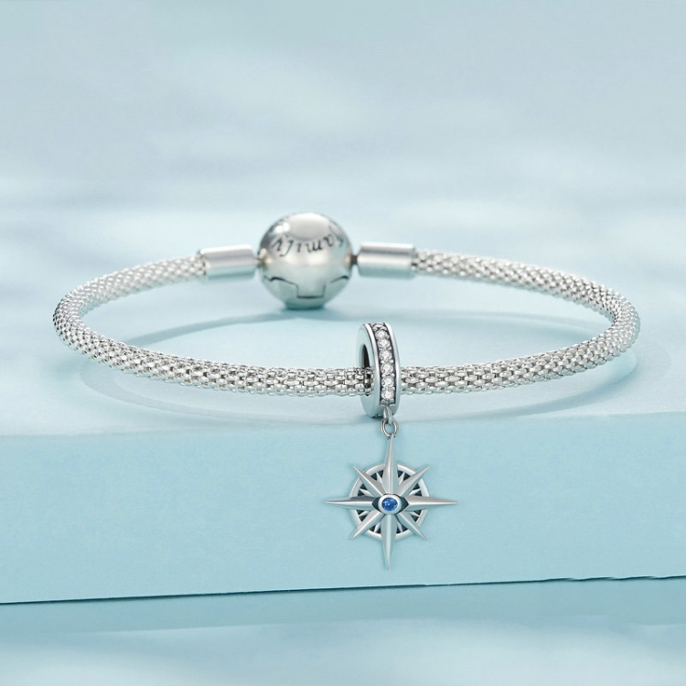 S925 Sterling Silver Sparkling Zircon Devils Eye Compass Bracelet Beads