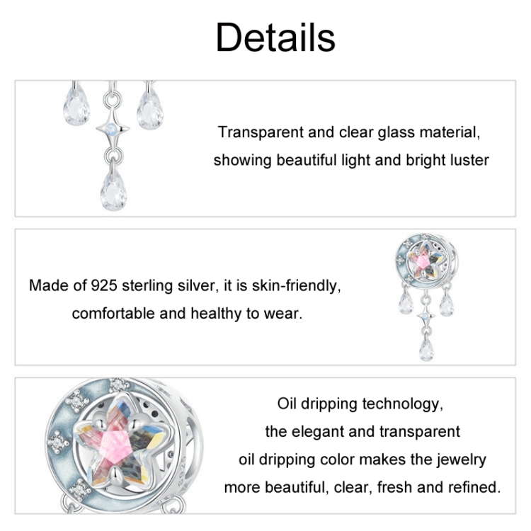 S925 Sterling Silver Star Moon Dreamcatcher Tassel DIY Beads