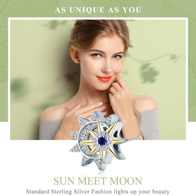 S925 Sterling Silver Sun And Moon Meet Loose Beads DIY Bracelet Accessories
