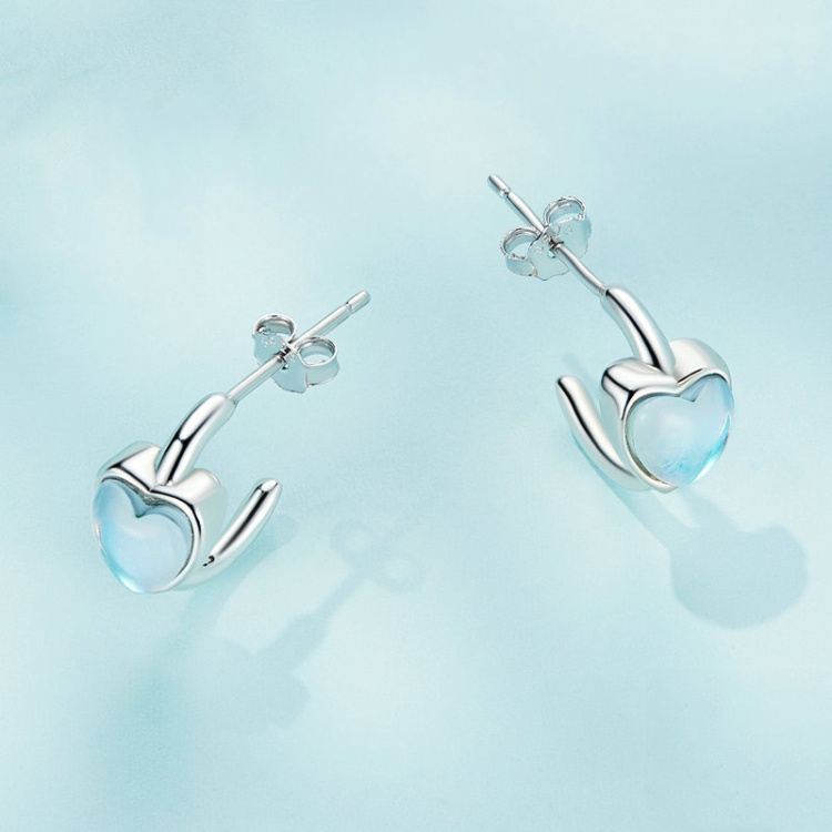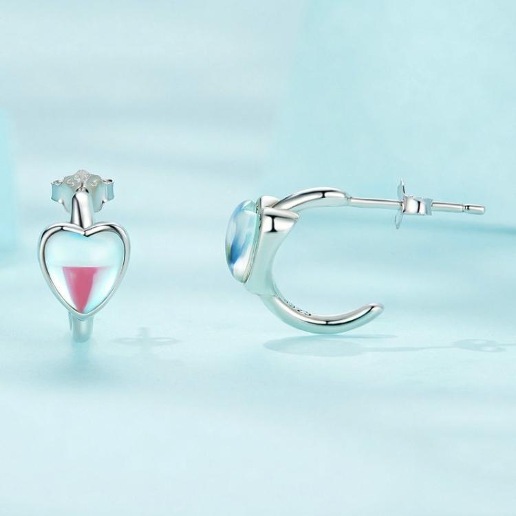 S925 Sterling Silver Synthetic Moonstone Heart Stud Earrings