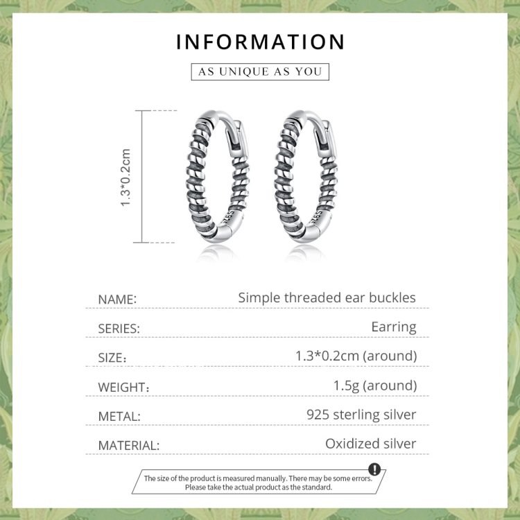 S925 Sterling Silver Thread Ear Buckle Women Earrings
