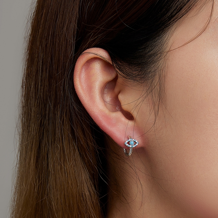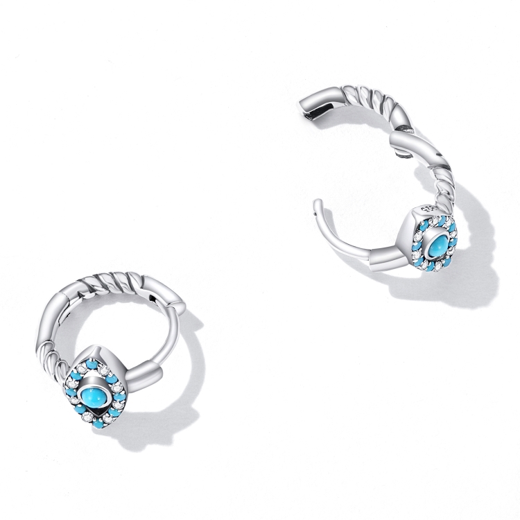 S925 Sterling Silver Turquoise Devil Eye Ear Buckle Women Earrings