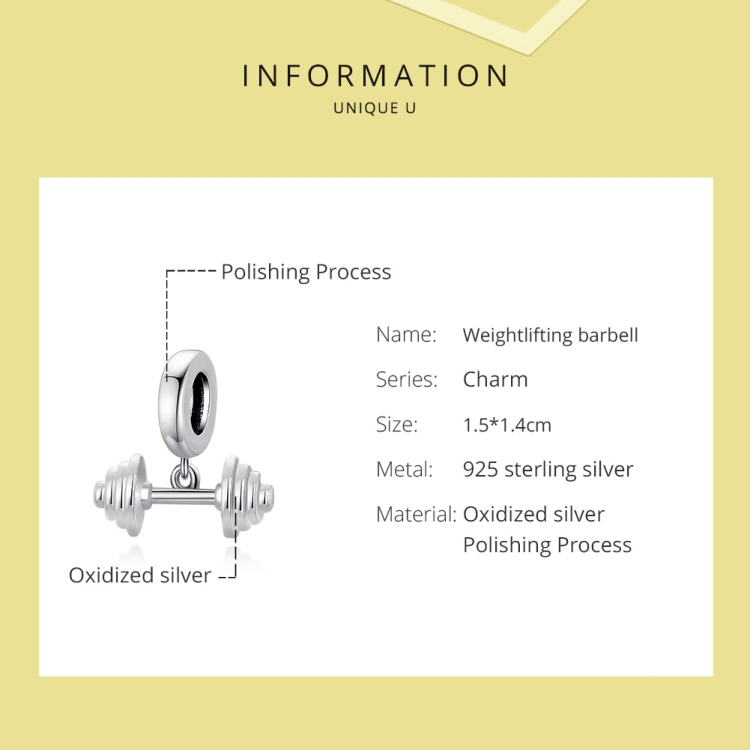 S925 Sterling Silver Weightlifting Barbell Pendant DIY Bracelet Necklace Accessories