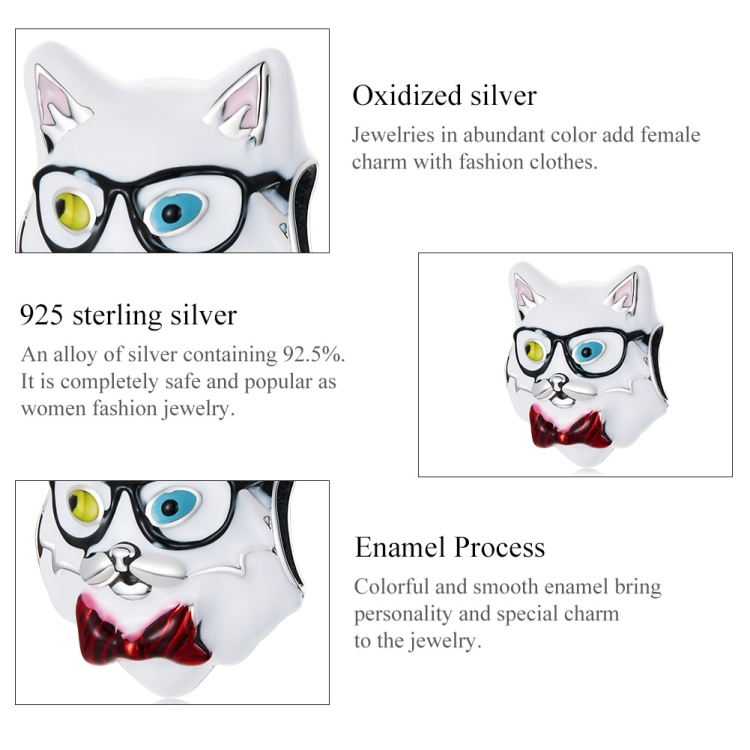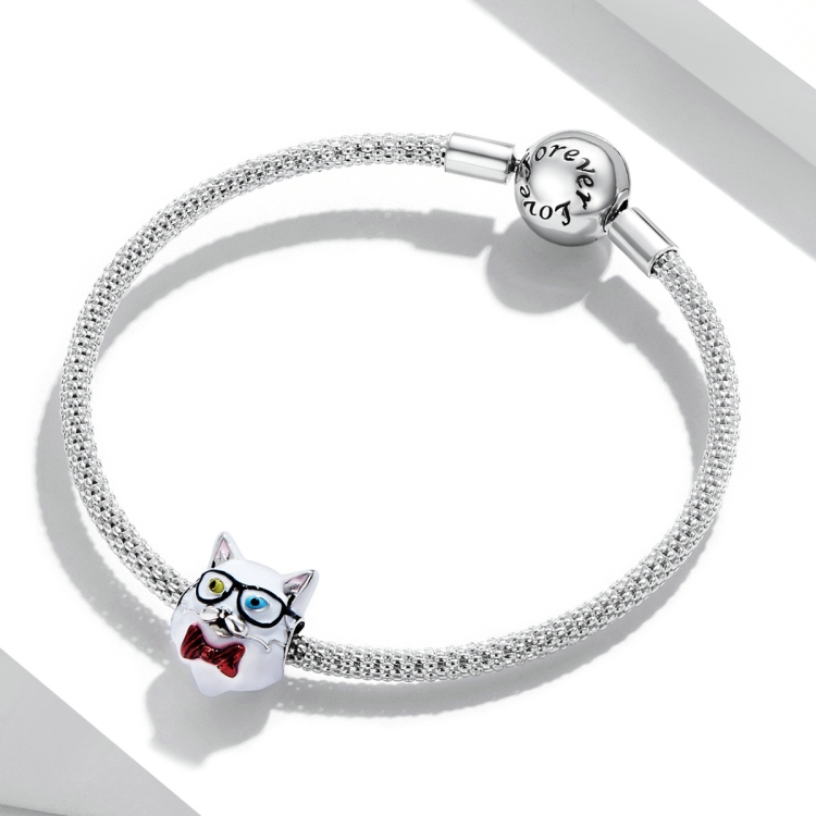 S925 Sterling Silver White Cat Beads DIY Bracelet Necklace Accessories
