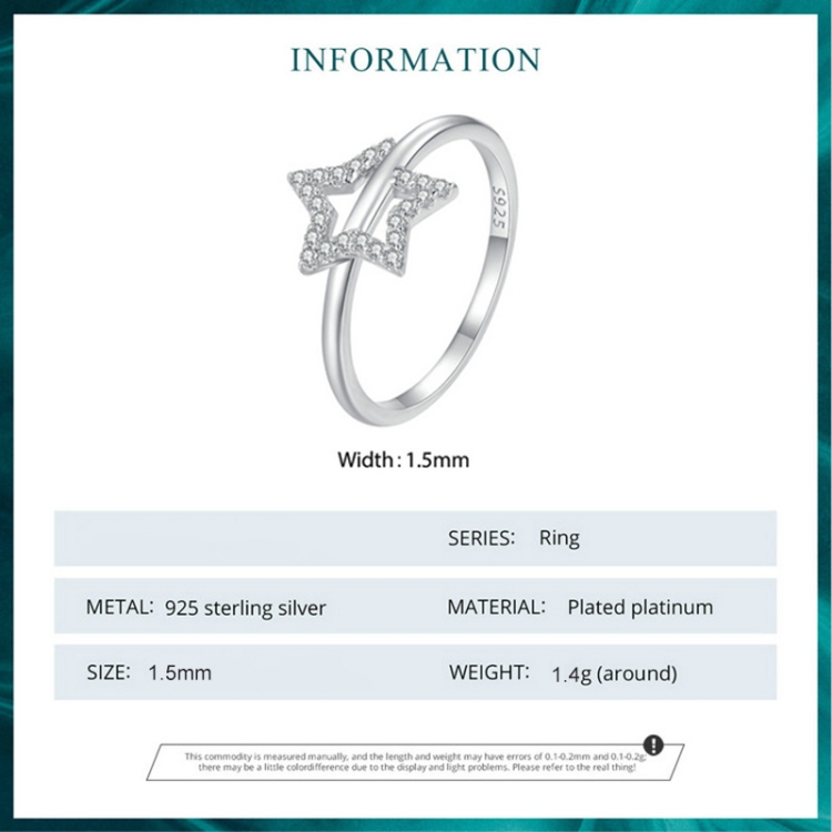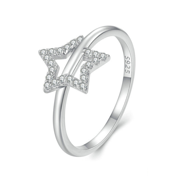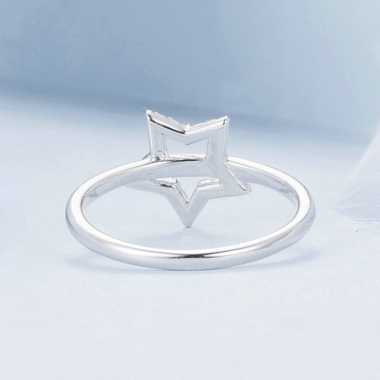 S925 Sterling Silver White Gold Plated Hollow Star Ring Hand Decoration