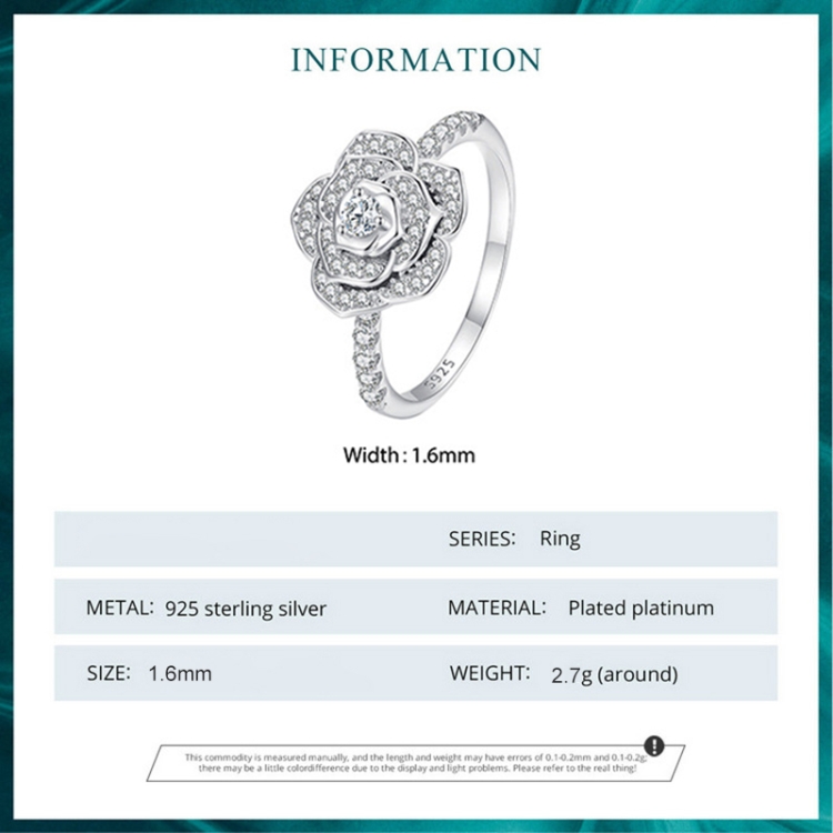 S925 Sterling Silver White Gold Plated Zircon Rose Ring Hand Decoration