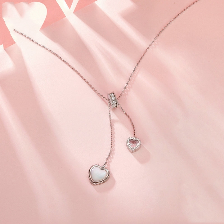 S925 Sterling Silver White Shell Love Y-shaped Valentine Day Necklace