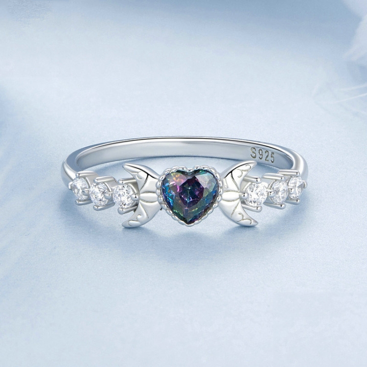 S925 Sterling Silver With Platinum-plated Vintage Heart-shaped Crescent Ring