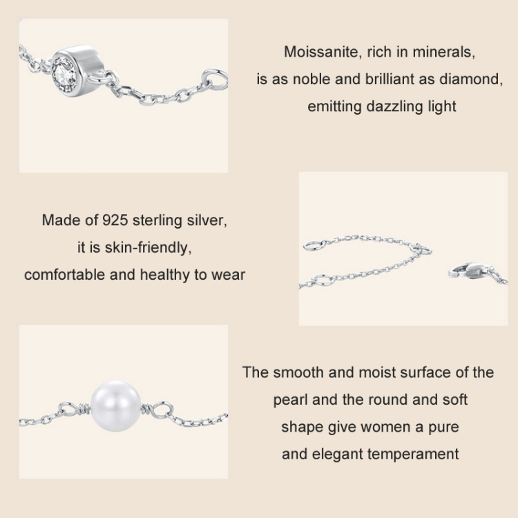 S925 Sterling Silver With White Moissanite Pearl Bracelet
