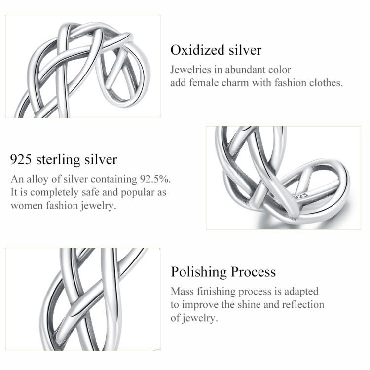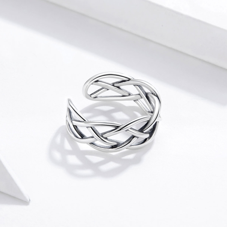 S925 Sterling Silver Woven Texture Hollow Women Open Ring
