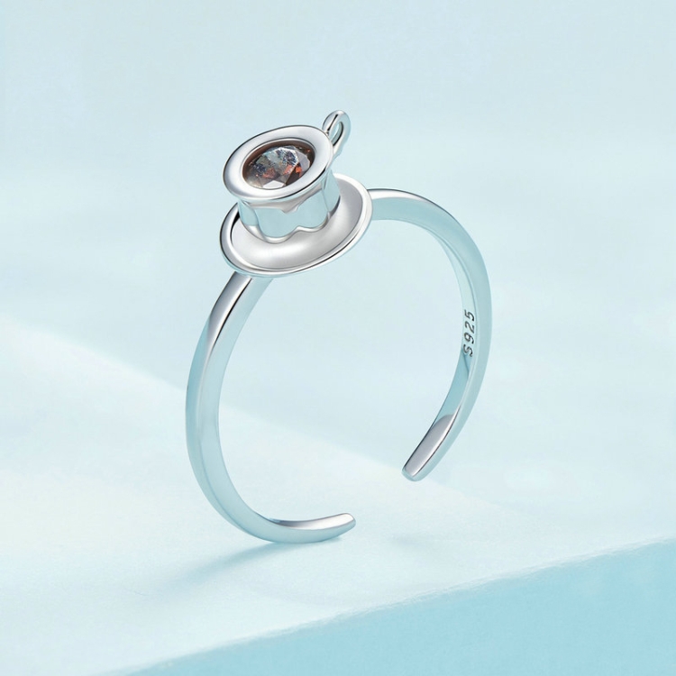 S925 Sterling Silver Zircon Coffee Mug Open Ring
