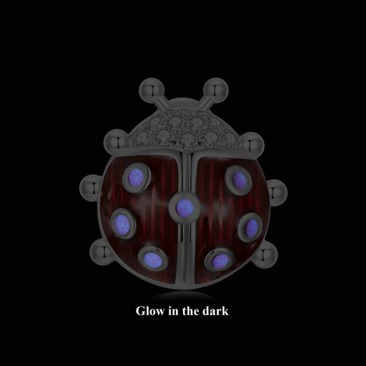 S925 Sterling Silver Zircon Luminous Seven-star Ladybug Silicone DIY Beads
