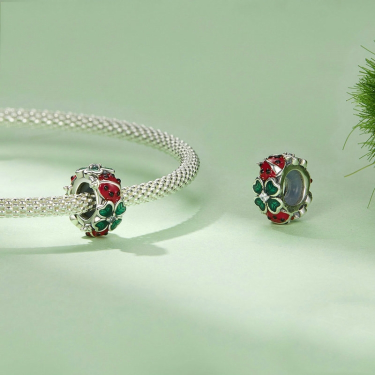 S925 Sterling Silver Zircon Silicone Ladybug Lucky Clover DIY Beads