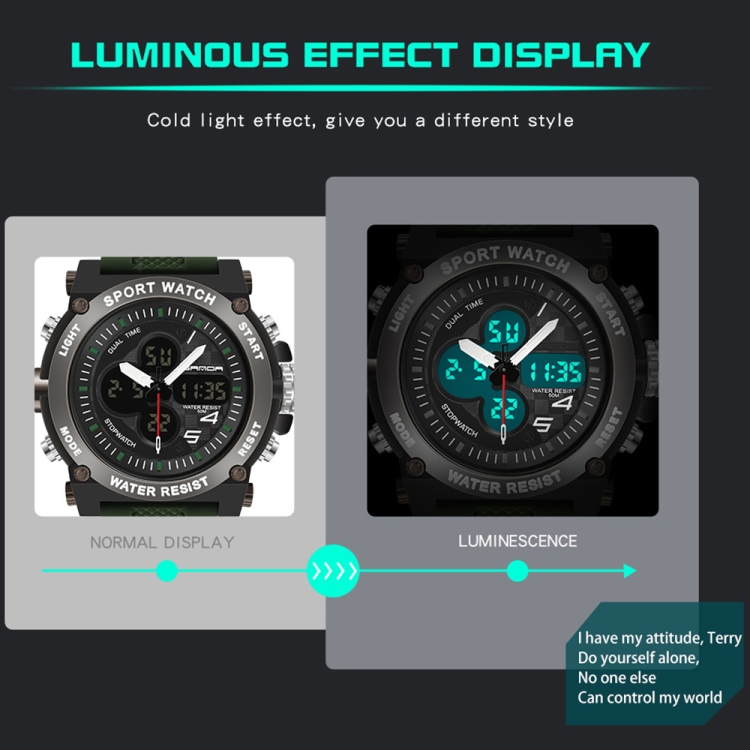 SANDA 3107 Dual Digital Display Luminous Alarm Clock Men Outdoor Sports Electronic Watch