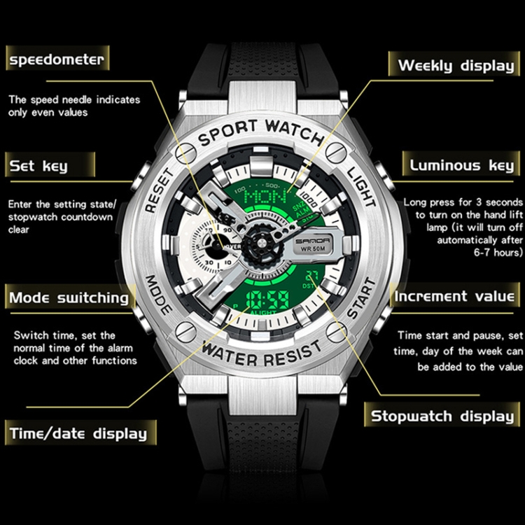 SANDA 3170 Men Luminous Waterproof Sports Watch