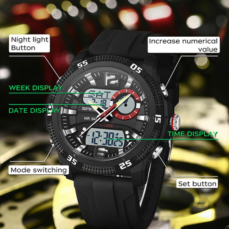 SANDA 3372 Dual Display Chronograph Alarm Clock Electronic Watch Outdoor Waterproof Luminous Sports Watch