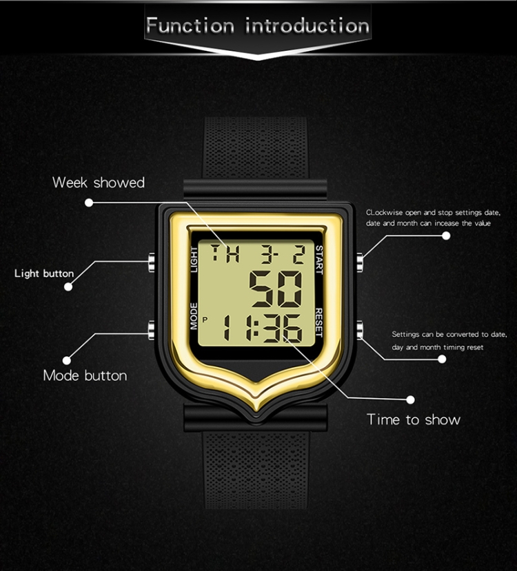 3. Special functions: night light, week display, alarm, month display, calendar, 24-hour indication