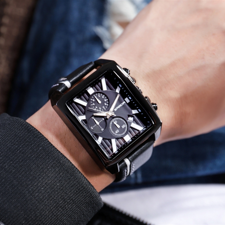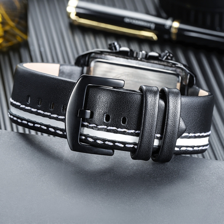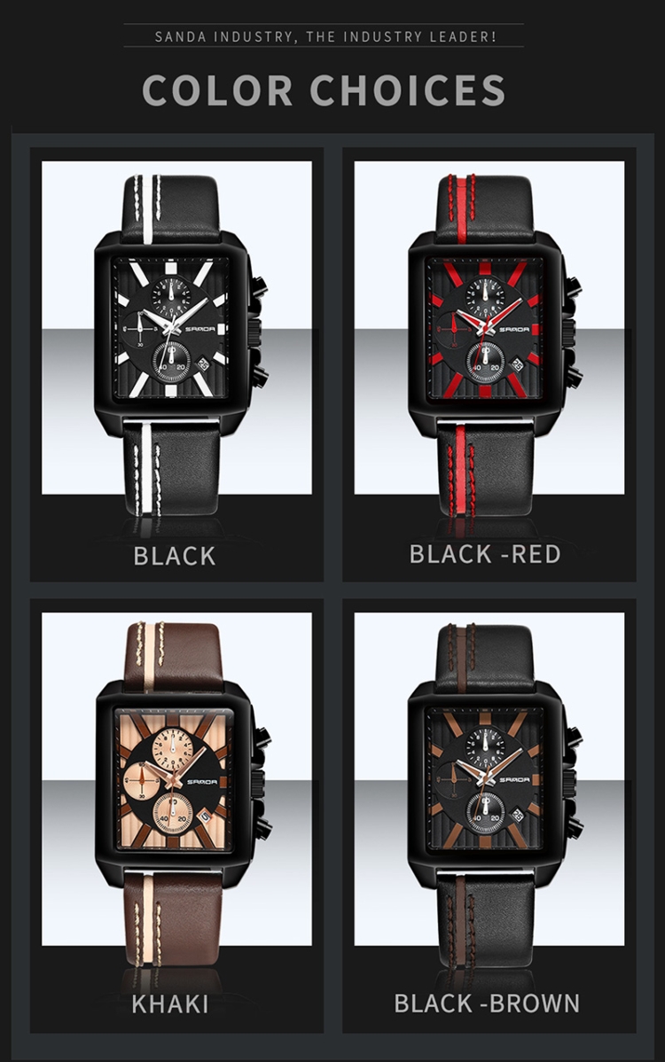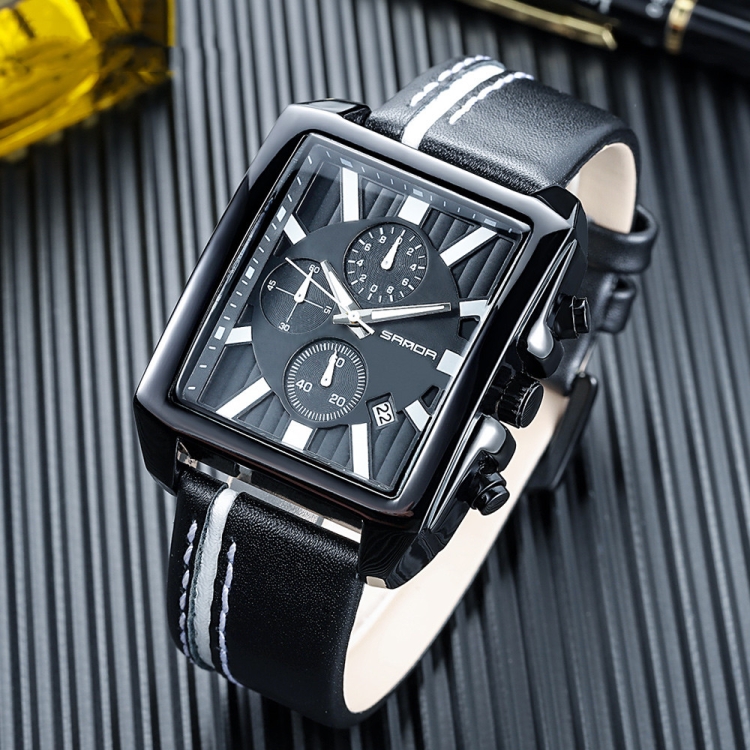 SANDA 5003 Three Eye Watch Six Pin Multi Purpose Sport Men Watch Leather Watch Student Waterproof Quartz Watch