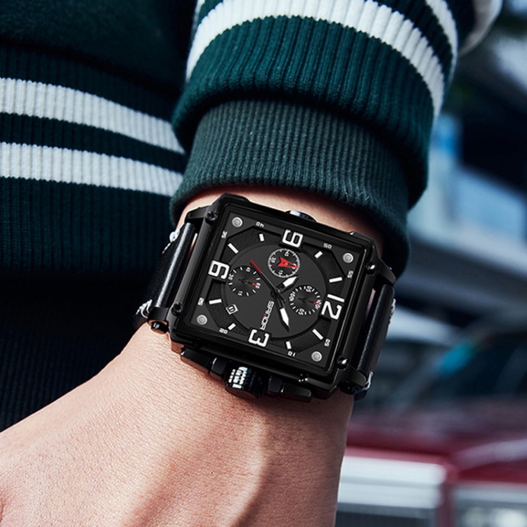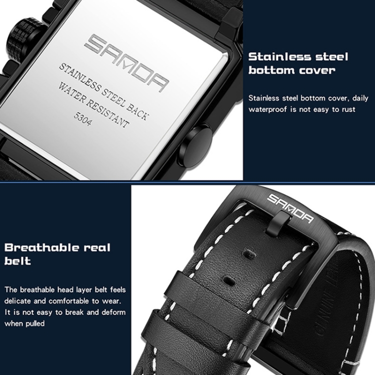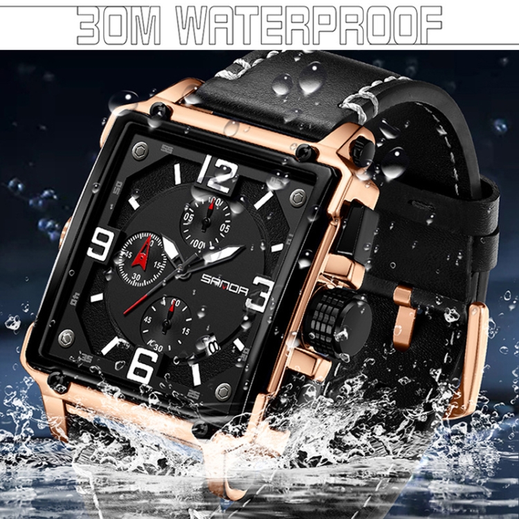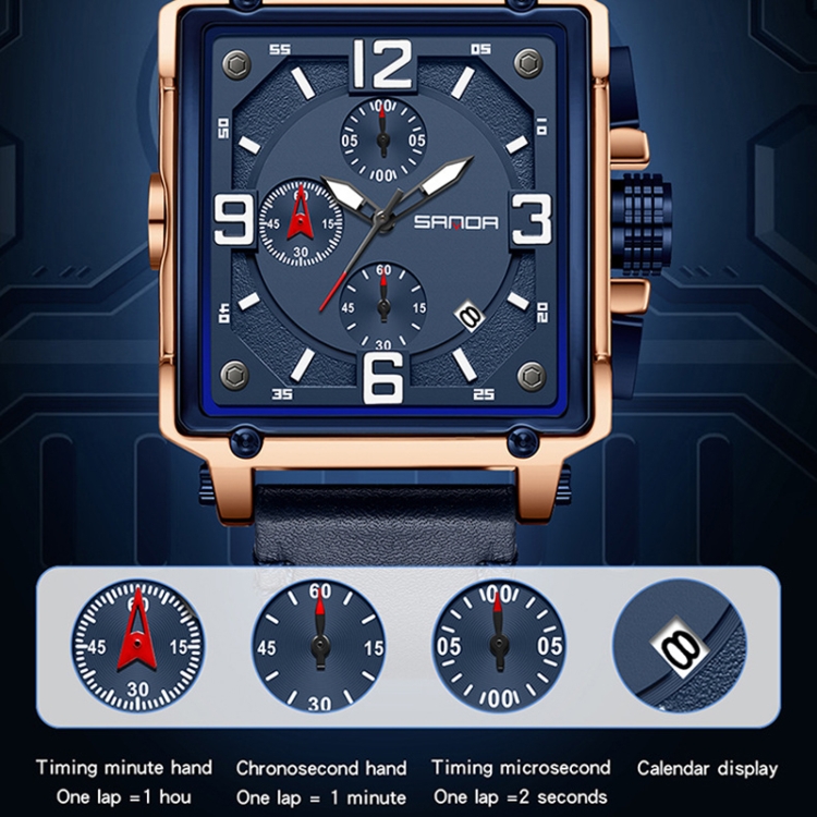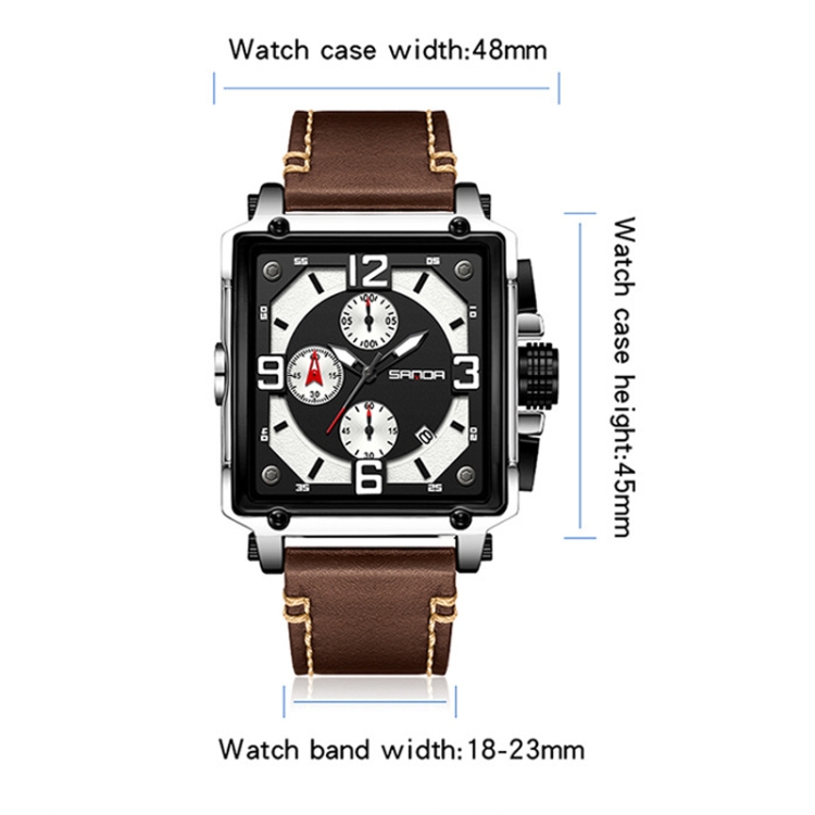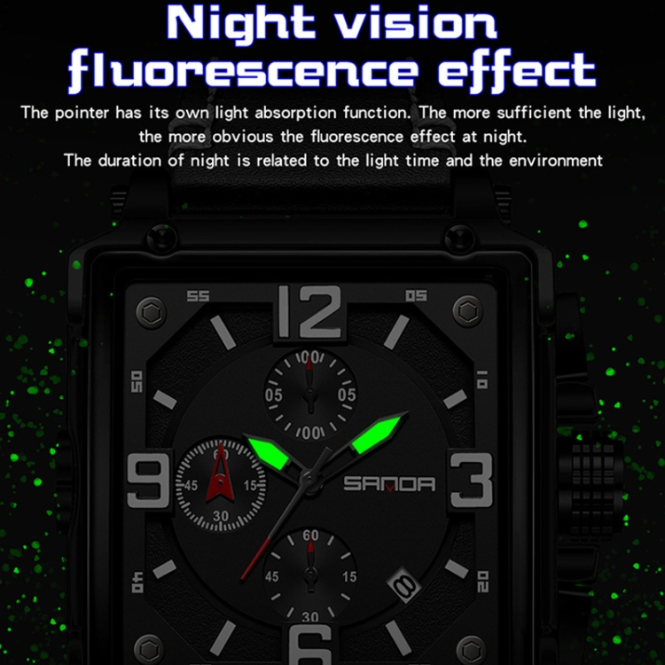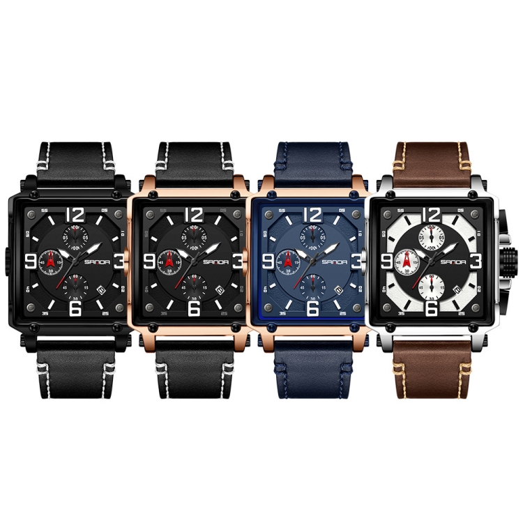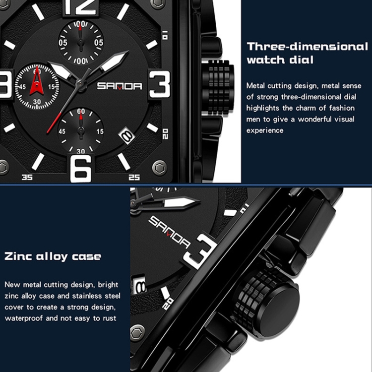 SANDA 5304 Quartz Men Watch Three Eyes Six Stitches Simple Calendar Waterproof Waist Watch