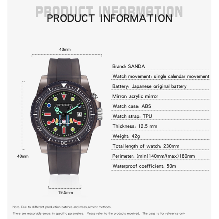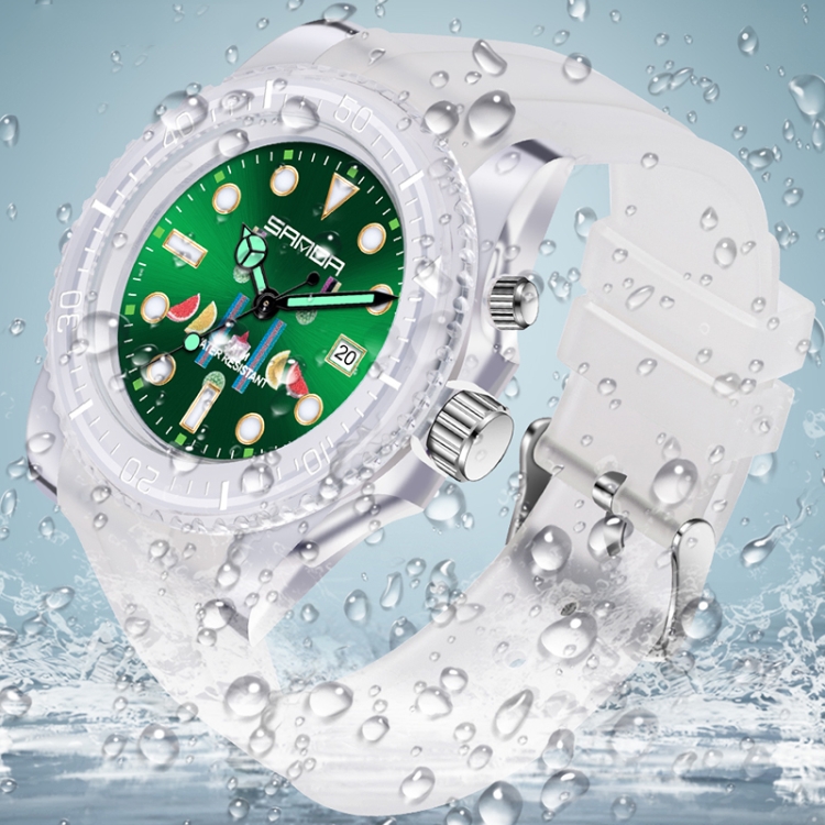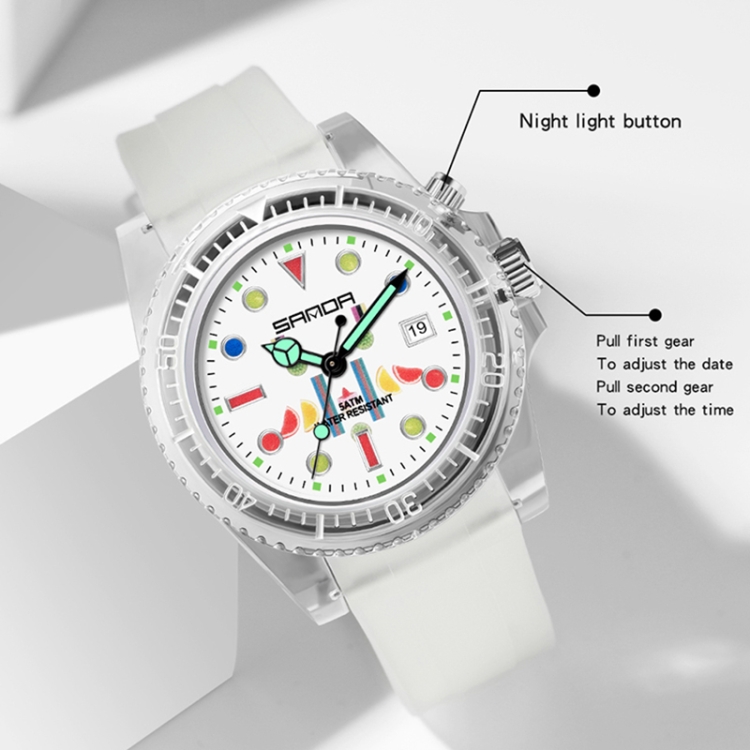 SANDA 6078 Fluorescent Calendar Dial Transparent Strap Quartz Watch for Women