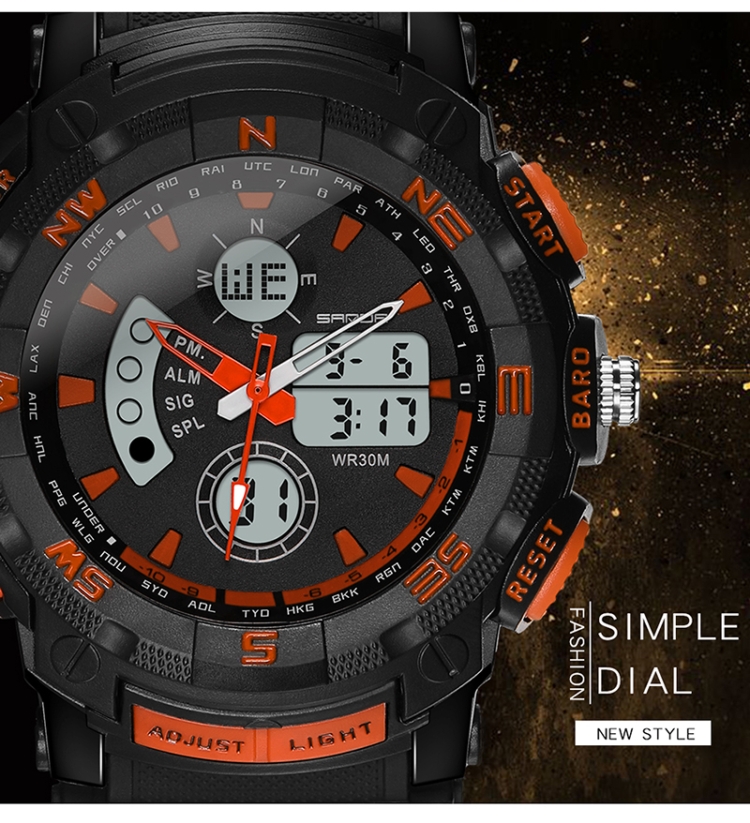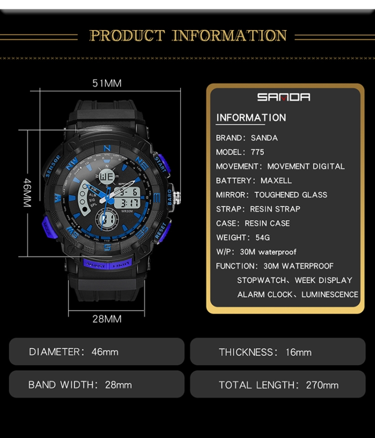 SANDA 775 Watch Male Electronic Watch Adult Middle School Students Youth Multi Functional Sports Water Proof Trend Double Watch