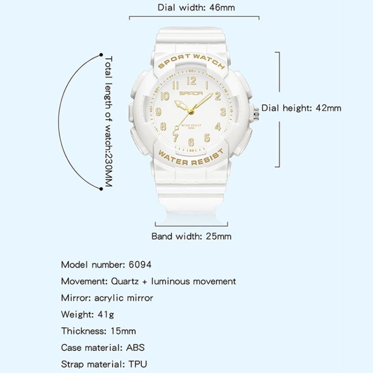 SANDA Small Fresh Digital All-match Waterproof Luminous Student Watch