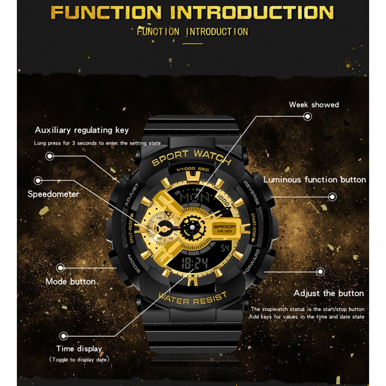 11. Function: world time, luminous function, stopwatch timing, speedometer, day/calendar, daylight saving time, countdown, 12/24 hour system, alarm function, pointer automatic tracking