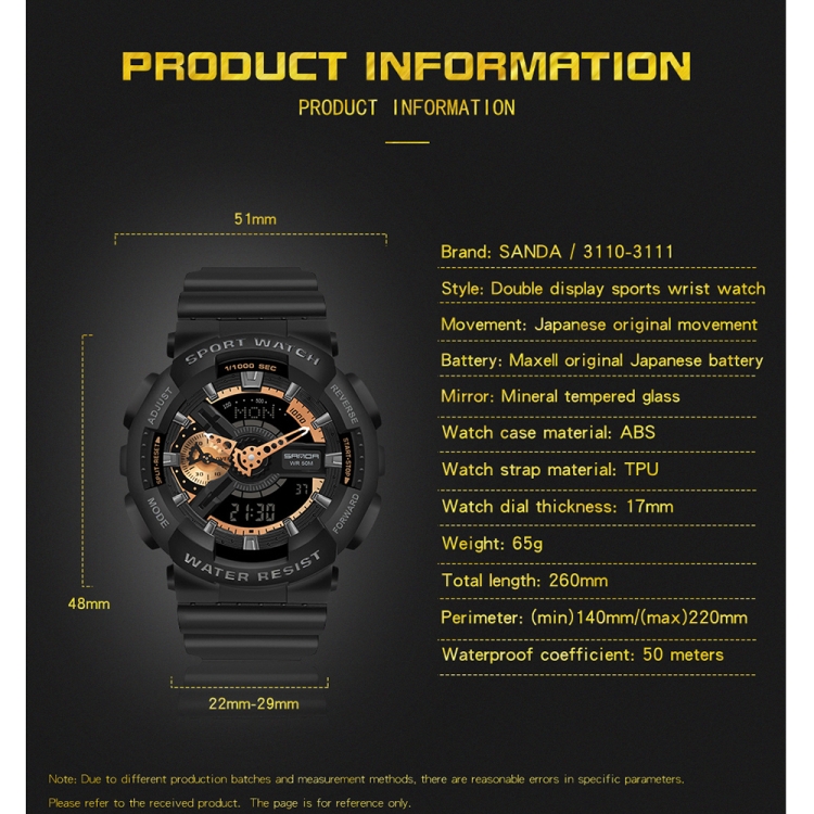 | Color | 3110 Black Gold, 3110 Black Rose Gold, 3110 All Black, 3111 Black Gold, 3111 All Black |