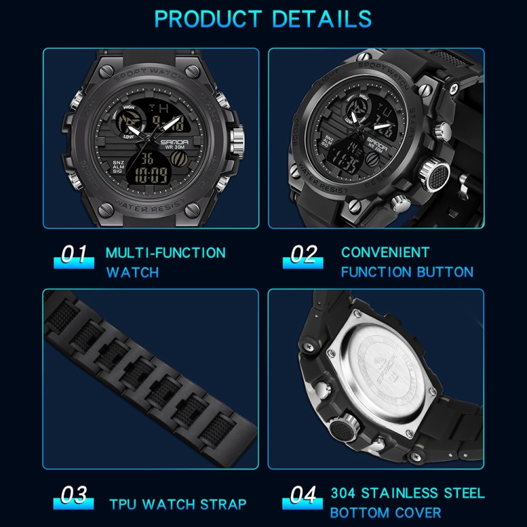 SANDA739 Watch Plate Chao Male Watch Male Student Fashion Trend Multi Functional Digital Waterproof Electronic Meter