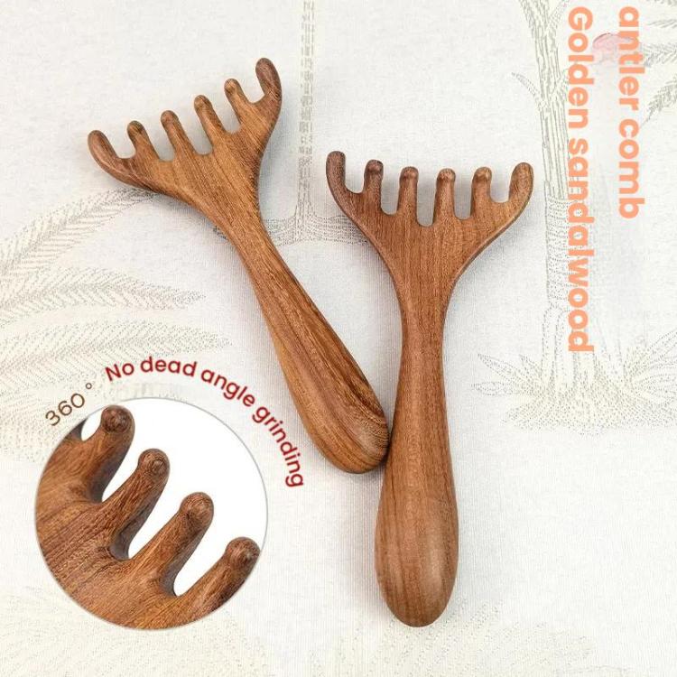 Sandalwood Head Massage Comb Therapy Tool Scalp Massage 6-Claw Acupoint Scratcher Spa Head Meridian Comb