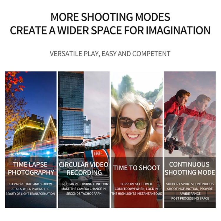 2. Function: IP68 waterproof, 170 degree long wide-angle 6-wave high-definition optical glass lens, bare metal waterproof 10 meters (no waterproof case required), support (mobile phone APP control), SOS emergency light, outdoor flashlight lighting, support (car mode/ Motion detection/WDR wide dynamic), continuous shooting, automatic shooting, loop recording, time-lapse recording, etc.
