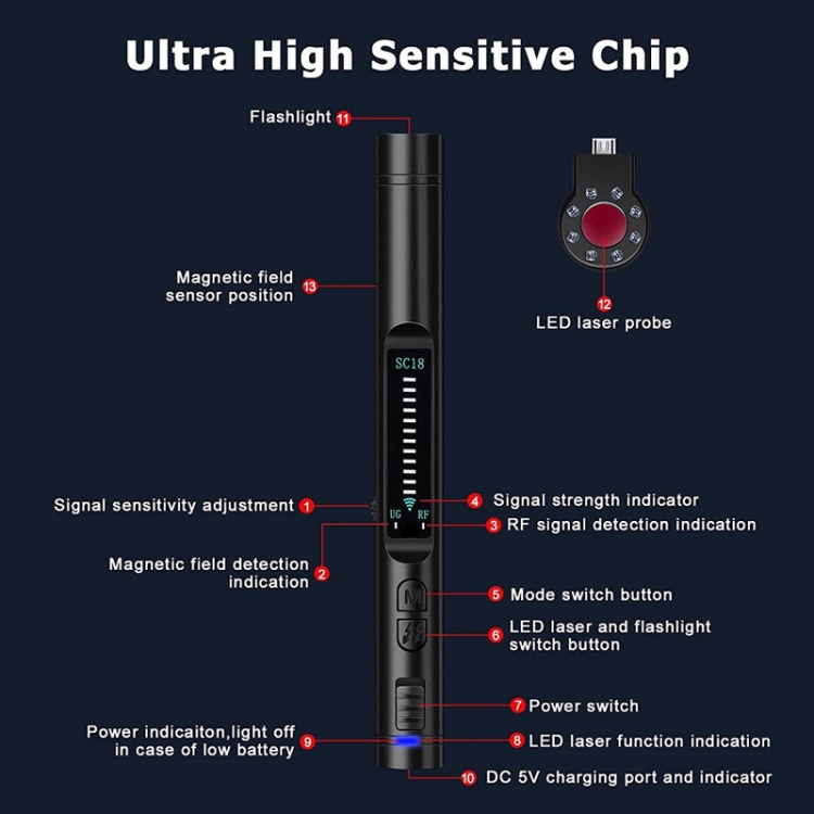 SC18 Signal Detector Hotel Anti-Sneak Camera Detector GPS Find Scanner