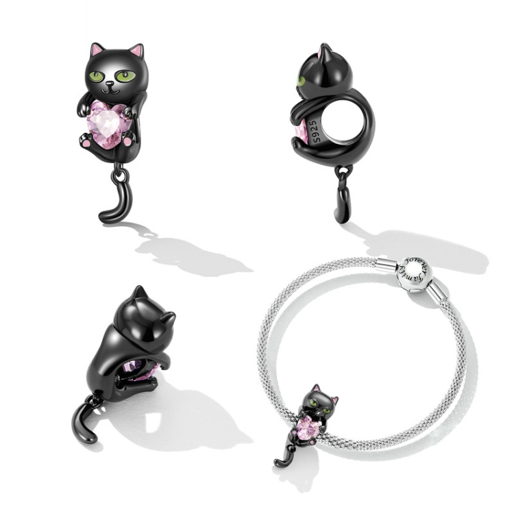 SCC2329 Little Black Cat DIY Bracelet Bead S925 Silver Bead Accessories
