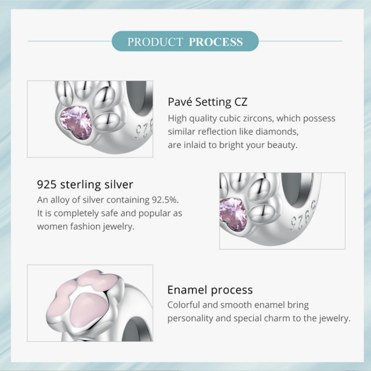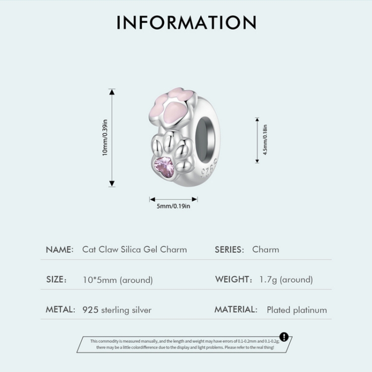 SCC2515 S925 Sterling Silver Cat Claw Silicone Bead Pendant Accessories DIY Bracelet Beads