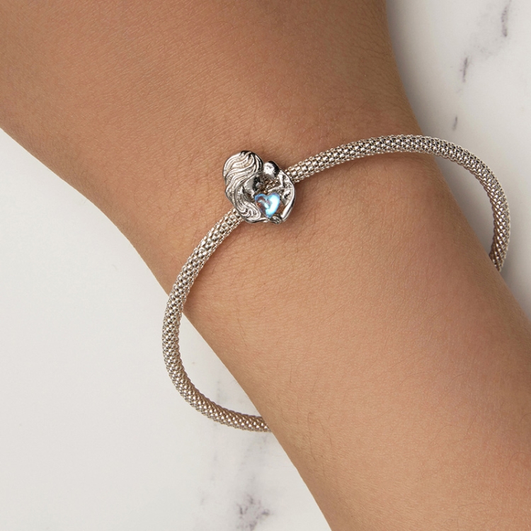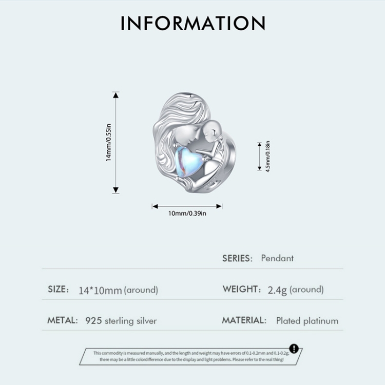 SCC2539 S925 Sterling Silver Necklace Pendant Accessories Heart Shape Parent-child Mother Love DIY Bracelet Beads