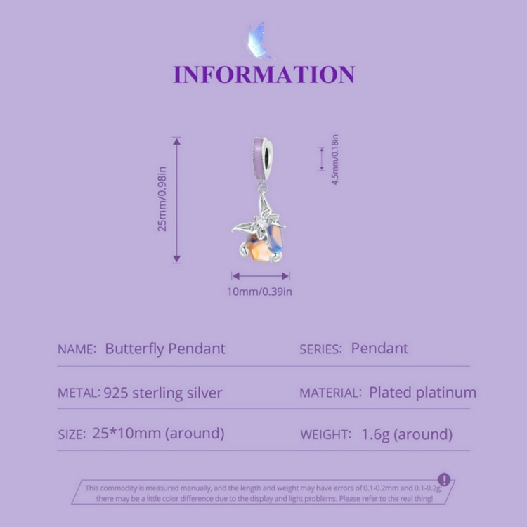 SCC2546 S925 Sterling Silver Necklace Pendant Accessories Pastoral Butterfly DIY Bracelet Beads